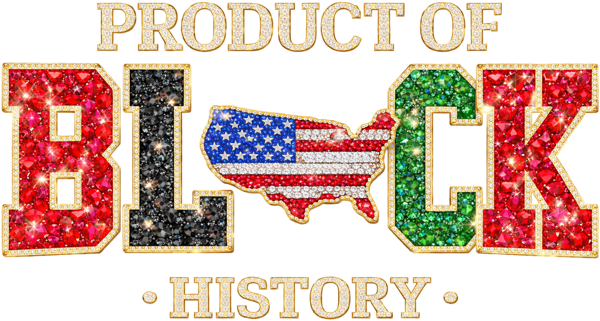 Product of Black History BLING DTF TRANSFER 7.50" tall 12.5"-13" wide